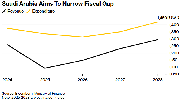 沙特经济战略更新 - 沙特阿拉伯计划发布其经济多元化议程“2030愿景”的更新策略,以应对财政压力并调整政策和支出优先级 [1] - 财政大臣表示政府本周已开始讨论如何传达其未来五年的战略,但未提供具体发布时间 [1] - 战略调整旨在寻求缩小预算赤字的同时,实现经济脱离石油的多元化 [1] 战略重点领域 - 政府列举了旅游、制造、物流和科技作为重点发展领域 [1] - 吸引更多私人资本和外国投资已成为“2030愿景”更重要的优先事项,目标是让私营部门领导经济 [1][2] 财政状况与融资计划 - 由于多元化支出超过受油价疲软影响的收入,沙特自2022年以来一直处于财政赤字状态 [6] - 官员预计财政赤字将从2025年占GDP的5.3%缩小至明年的3.3% [6] - 该国预测2025年总融资需求约为580亿美元,并计划在国际债券市场发售多达170亿美元的债券 [6] 项目成本与调整 - 基于多方估算,“2030愿景”计划的总体成本可能接近2万亿美元 [1] - 政府正在重新制定重大项目的计划,其中包括为2034年世界杯建设的新体育馆 [1] - 在多年过度支出后,沙特特别加强了对提高支出效率的关注,以应对石油收入和价格的波动 [1] 经济增长表现 - 2025年沙特国内生产总值创下三年来最快增速 [6] - 在欧佩克+新的供应政策下,石油部门已成为更强劲的经济增长引擎 [6]