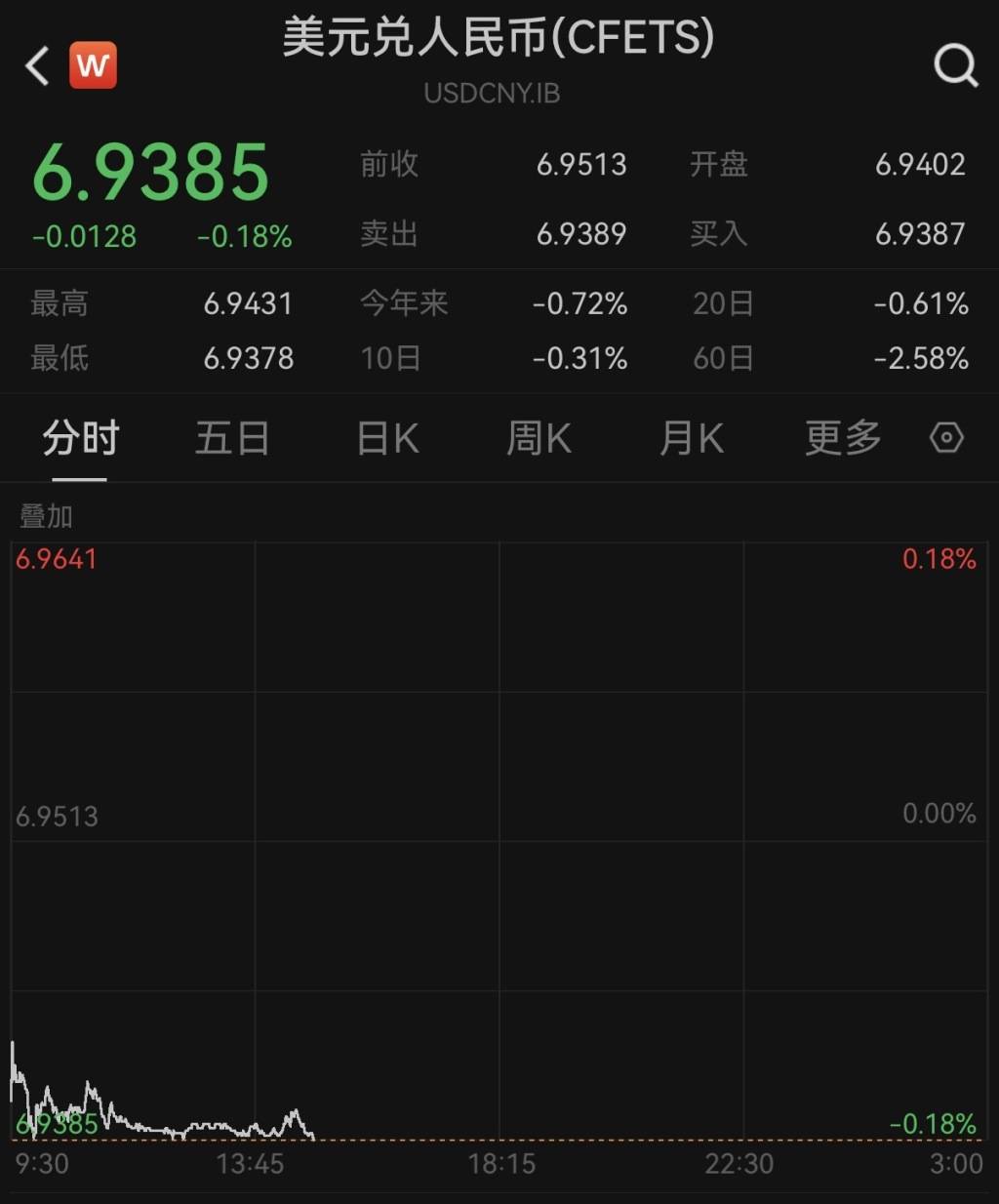 人民币对美元即期汇率升破6.94,创32个多月新高