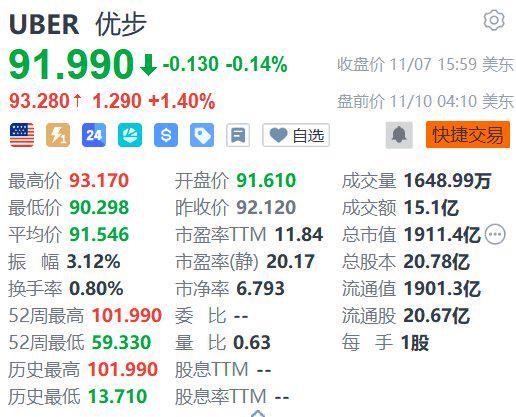 美股异动丨优步盘前涨超1% 绩后获多家机构上调目标价