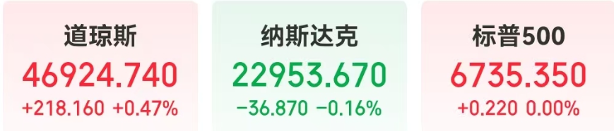 当地时间周二(10月21日),美国股市三大股指收盘涨跌不一。其中,道琼斯工业指数盘中一度创出历史新高。 人造肉第一股又火了。 受到国际金价大跌影响,美股市场黄金股集体重挫,其中,盎格鲁黄金跌逾11%,金罗斯黄金跌逾11%,巴里克黄金跌逾9%。 值得一提的是,人造肉第一股Beyond Meat在周一(10月20日)大涨127%后,周二再度大涨,截至收盘,该股上涨146.26%,近两个交易日股价累计涨幅 超过450%。盘后该股涨超20%。 道指盘中再创历史新高 当地时间周二,美国股市三大股指收盘涨跌不一。截至收盘,道琼斯工业指数涨0.47%,报46924.74点,盘中一度创出历史新高;标普500指数收平,报 6735.35点;纳斯达克指数跌0.16%,报22953.67点。 美股大型科技股表现分化,亚马逊涨超2%,苹果、微软、Meta均小幅上涨,特斯拉跌逾1%,谷歌A跌逾2%。 美股金融股全线收跌,其中,摩根士丹利、摩根大通、花旗集团、美国银行、富国银行跌幅均超过1%,伯克希尔哈撒韦、高盛跌幅不足1%。 航空股多数收涨,美国航空涨超1%,达美航空、西南航空涨幅均不足1%,联合航空跌逾1%。 中概股多数下跌,纳斯达 ...