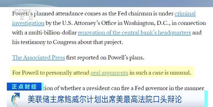 美联储主席鲍威尔出席最高法院辩论 - 美联储主席鲍威尔计划于本月21日出席美国最高法院的口头辩论 [1] - 辩论核心议题围绕总统特朗普是否有权解除美联储理事库克的职务展开 [1] 鲍威尔出席的背景与潜在信号 - 鲍威尔作为美联储掌舵人亲自出席最高法院口头辩论在过去十分罕见 [2] - 本月早些时候鲍威尔证实其本人正在接受美国司法部的刑事调查 涉及美联储办公楼数十亿美元的翻新工程及其向国会所作证词 [2] - 鲍威尔强调所谓的调查“只是借口” 真正的目的是施压美联储快速降息 [2] - 美国媒体报道认为 在这一背景下鲍威尔现身美国最高法院可能释放出他进一步硬刚特朗普政府的信号 [2] 库克被解职事件的起因与法律进程 - 去年8月特朗普以涉嫌住房抵押贷款欺诈为由解除美联储理事库克的职务 这一做法被美国媒体称为“史无前例” [4] - 库克称特朗普无权解除她的职务 将继续履职 双方就此诉诸法律程序 [4] - 当年10月美国最高法院发布一项指令 允许美联储理事库克暂时留任 直至2026年1月法院就总统特朗普是否有合法理由将其解职举行口头辩论 [4] 事件可能的结果与影响 - 如果库克最终被解职 特朗普可以提名自己心仪的美联储理事继任人选 [6]