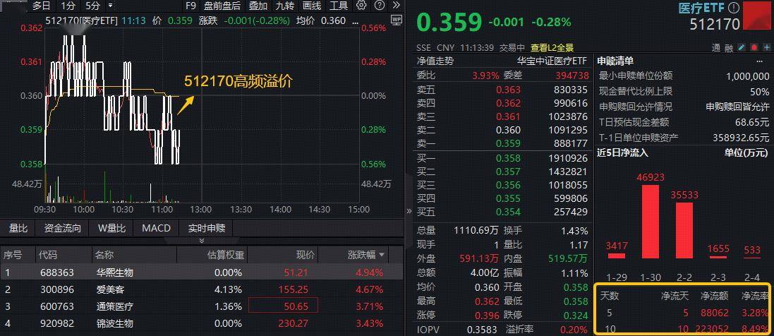 医药韧性凸显!中药龙头领涨,场内唯一药ETF逆市飘红!规模最大医疗ETF(512170)吸金26亿后延续高频溢价