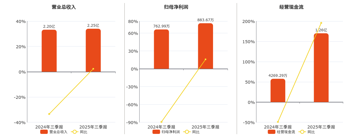 财务业绩表现 - 2025年第三季度公司实现营业总收入6.90亿元[1] - 2025年第三季度公司实现归母净利润1646.48万元[1] - 2025年第三季度公司经营活动产生现金净流入3347.87万元[1] - 公司最新摊薄每股收益为0.02元[3] 盈利能力指标 - 公司最新毛利率为13.63%[3] - 公司最新净资产收益率(ROE)为0.85%[3] 资产与运营效率 - 公司最新资产负债率为19.84%,较上季度增加1.01个百分点[3] - 公司最新总资产周转率为0.27次[3] - 公司最新存货周转率为3.39次,较去年同期下降0.41次,同比下降10.74%[3] 股权结构 - 公司股东户数为5.90万户[3] - 前十大股东持股数量为1.86亿股,占总股本比例为17.36%[3] - 第一大股东李洪国持股比例为12.1%[3]