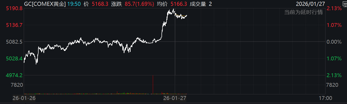 1月27日,受特朗普表态对美元贬值持宽容态度及美国政府重现停摆危机影响,现货期货金价早盘小幅回调后再度强势走高,盘中触及5190美元后尾盘小幅 回落,截至收盘,COMEX黄金期货上涨1.91%报5179.60美元/盎司,黄金ETF华夏(518850)涨0.08%,黄金股ETF(159562)跌0.26%,有色金属ETF基金 (516650)跌1.35%。 分析人士指出,美元部分跌幅源于日元自上周以来的突然反弹。交易员正在押注日本官方可能出手干预汇市,以支撑本国货币,令日元显著走强。与此同 时,华盛顿方面反复无常的政策信号,包括特朗普扬言要接管格陵兰,也令欧洲盟友感到不安,进一步削弱了投资者对美元资产的信心,推动金价进一步走 强。 消息面上,周二,特朗普在接受记者采访时被问及美元近期下滑是否令人担忧,他表示,尽管美元作为全球最主要的储备货币已跌至接近四年来的最低水 平,看看我们正在做的生意,美元表现得非常好。特朗普还补充称,希望美元"顺其自然,回到一个公平的水平"。特朗普讲话后,美元指数一度下跌约 1.2%,触及当日新低,美元对所有主要货币普遍走软。 ...