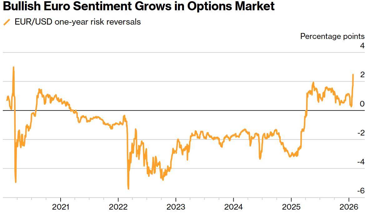欧元兑美元汇率走势及市场情绪 - 在美国总统特朗普表示不担心美元贬值后,欧元兑美元汇率自2021年6月以来首次攀升至1.20水平之上,涨幅一度达1.7%,至1欧元兑1.2081美元 [1] - 随着美元兑十国集团(G10)所有主要货币再次回落,欧元延续了其涨势 [1] - 期权市场对欧元的看涨情绪持续高涨,针对未来一年欧元兑美元上涨进行套期保值或投机的溢价已升至2020年3月以来的最高水平 [1][4] 美元面临的压力因素 - 由于对美国赤字上升和贸易摩擦的担忧,美元一直面临广泛压力 [4] - 在日益增长的地缘政治风险中,加速向黄金及其他储备资产的多元化配置也拖累了美元 [4] - 美元在今年年初反弹后,上周重新开始下滑,纽约联邦储备银行联系了金融机构以核查兑日元的汇率 [4] - 政府再次停摆的威胁可能会增加美元的压力,参议院民主党领袖誓言阻挠支出法案,增加了美国政府部分停摆的风险 [4] 市场关注焦点与预期 - 投资者目前将关注货币市场对周三美联储利率决议的反应 [4] - 掉期交易员预计美联储本周将维持利率不变,并预计该央行今年仅会有不到两次的25个基点降息 [4]