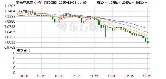 新华网北京12月25日电(刘睿祎 梁栋飞)近期,人民币兑美元汇率不断走强。12月25日,离岸人民币 对美元升破7.0整数关口,截至发稿时,达6.9978;在岸人民币对美元也探至7.0133。另外,中国外汇交 易中心12月25日受权公布人民币对美元的市场汇价,即人民币对美元市场中间价为7.0392,上调79个基 点。 他表示,美联储降息将继续主导美元指数走势。尽管明年美联储降息节奏需视美国经济后续走势而定, 但在新任美联储主席有可能态度偏"鸽"、更偏向用货币政策来保增长的情况下,降息幅度或超过今年9 月的点阵图预测。 "从2019年和2024年经验来看,美元指数在降息兑现后,均有所反弹,但在数月后转向下行。若以此类 推,特别是再考虑到美联储的降息空间或明显大于其他非美央行,美元指数的下行趋势或大致于明年一 季度或二季度正式开启。同时,美国经济仍领跑主要发达经济体,对于美元有支撑。"温彬说。 申万宏源证券首席经济学家赵伟认为,10月中旬以来,人民币经历了一波快速升值,但结汇率并没有显 著走高。其团队研报分析称,10月至11月,在"三价合一"的背景下,央行重启逆周期因子、不断调升的 中间价对升值有一定引导。而12月 ...