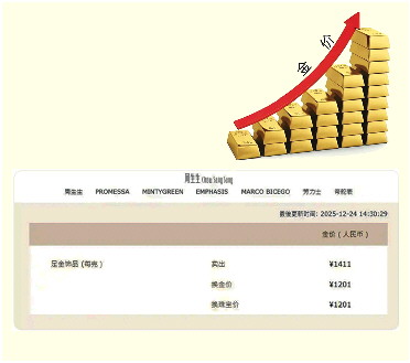 金价高位回调!2025年12月25日各大金店黄金价格一览