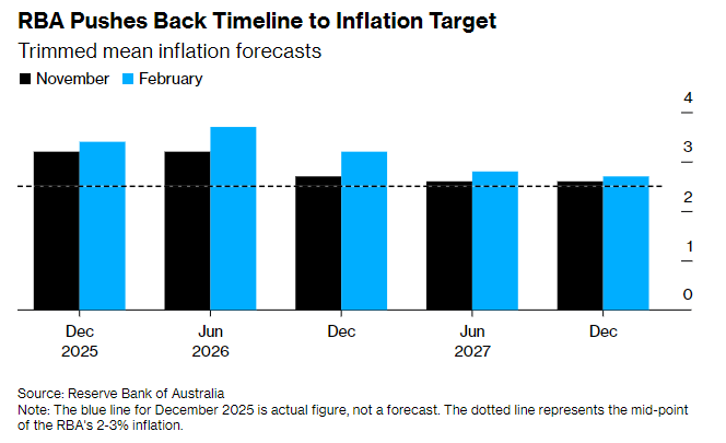 澳洲联储货币政策立场与通胀前景 - 澳洲联储主席表示若通胀持续顽固 已准备好再次加息 但强调尚未确定是否必要 决策将高度依赖数据[1] - 澳洲联储上周成为今年全球首个加息的主要央行 其经济预测显示未来数月至少还会加息一次[1] - 该行预计今年整体通胀与核心通胀均将突破2%–3%的目标区间上限[1] - 2月消费者通胀预期调查指标跃升至5% 为2025年6月以来最高水平[4] 澳洲经济结构性挑战与数据展望 - 澳洲联储指出受生产率长期低迷拖累 澳洲经济的“增长上限”已被压低 除非提升生产率 否则在年增长率超过2%的同时不引发通胀将十分困难[4] - 澳洲联储下一次议息会议将在3月中旬召开 会前将拿到1月就业与通胀数据以及2025年第四季度GDP数据[4] - 多数经济学家预计澳洲联储将在5月审议完一季度通胀数据后再次加息 将现金利率从目前的3.85%上调至4.1%[4] 劳动力市场与通胀压力评估 - 澳大利亚失业率处于历史低位 12月为4.1%[5] - 澳洲联储估算的充分就业失业率(非加速通胀失业率NAIRU)为4.6%[5] - 决策者将密切评估经济产能压力与劳动力市场状况 以判断近期通胀回升是暂时现象还是趋势反弹[5] - 持续偏紧的格局与判断经济中仍存在一定通胀压力是一致的[5] 政策沟通与政治敏感性 - 澳洲联储主席在听证会上被反复追问政府支出对通胀的推动作用时 明显流露出不耐烦 后续回应愈发简短[5] - 主席承认政府支出会推高总需求 但澳洲联储只能将其视为“既定条件” 刻意避免直接批评财政政策[5] - 主席驳斥了关于其称经济“尚可”是在“误导公众”的说法 强调劳动力市场表现良好对民众有利 但也清楚很多人日子并不好过[6]