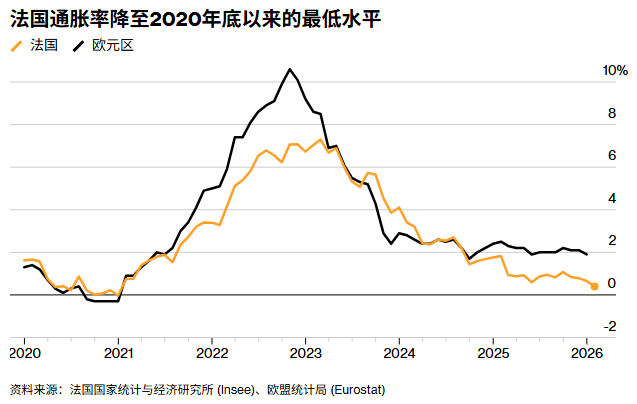 能源退潮、冬促延长:法国1月通胀意外跌至0.4%创五年新低