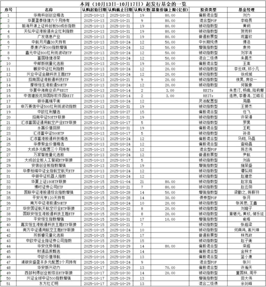 新基金发行市场概况 - 国庆长假后首个交易周有51只新基金扎堆发行,其中31只在同一天启动募集 [1] - 权益类产品在新发基金中占比高达82% [1] - 新基金募集份额上限差异显著,最高达80亿份,最低为3亿份 [2] 基金产品结构特征 - 被动指数型基金数量众多,覆盖科创创业、科创板50、港股通央企红利等多个主题 [2] - 行业主题ETF密集发行,涉及金融科技、港股通科技、通用航空、机器人等前沿领域 [2] - 混合型FOF和债劳型FOF产品同时出现,显示资产配置策略多元化 [2] 市场策略与资金动向 - 机构采取"两头押宝"策略,同时布局红利股和小微盘,银行板块涨超12%,微盘股指数飙升35% [3] - 财报季前后个股表现与业绩相关性提高,但可能成为机构"假摔"的操作窗口 [5] - 量化数据显示机构资金动向与股价表面走势可能背离,需穿透表象分析本质 [11] 投资行为分析 - 市场存在利用利空消息制造"假摔"和配合利好消息出货的"真跌"现象 [5][6] - 投资者容易陷入踏空焦虑、套牢恐惧等情绪化交易困境 [7] - 新基金平均认购期缩短至12.59天,显示发行节奏加快 [11] 量化分析应用 - 量化数据能有效识别机构资金持续活跃与撤离的区别,不受情绪影响 [11][13] - 建议用量化工具分析基金底层资产,关注机构真实动向而非宣传口径 [13] - 投资应基于数据判断,而非追逐市场热点和表面消息 [12]