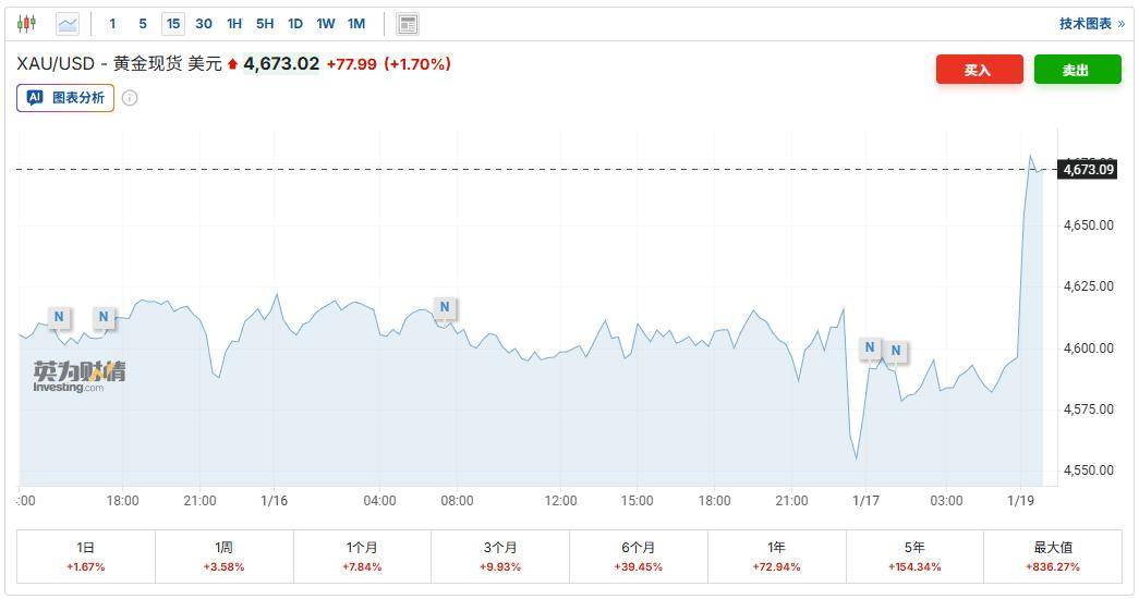 特朗普关税威胁引爆避险情绪 现货黄金突破4670美元再创历史新高