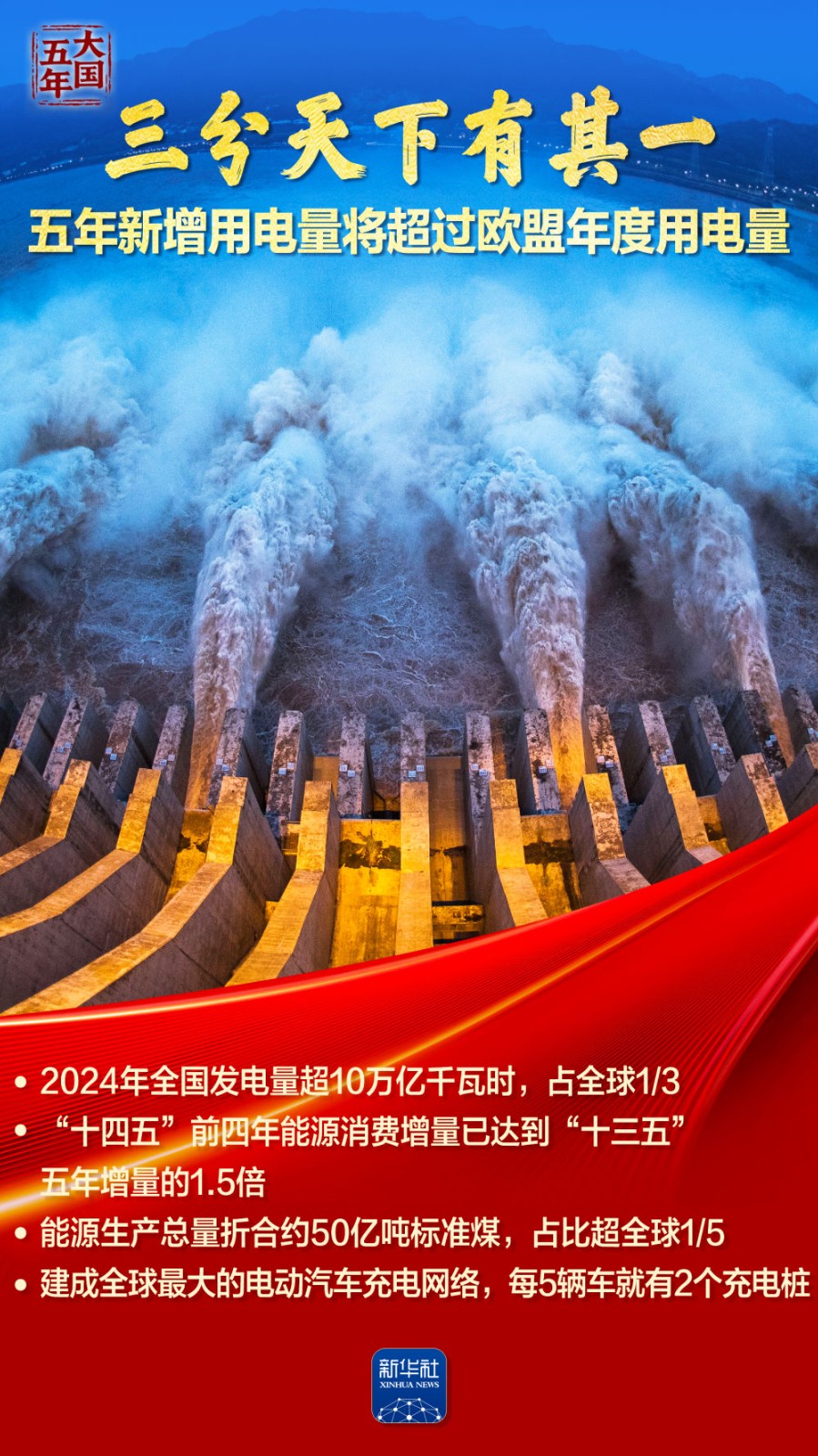能源生产与供应 - 能源生产总量折合约50亿吨标准煤,占比超全球五分之一 [3] - 建成全球门类最全、规模最大的能源体系,年度投资额接连突破4万亿、5万亿、6万亿大关 [19] - 国内能源生产加力提速,实现消费增量90%以上由国内自主保障 [12] - 油气开发突破深地“万米大关”、挺进“千米深海” [8] - 储备能力稳步提升,油气“全国一张网”加快形成 [12] 绿色能源转型 - 全社会用电量中,每3度电就有1度绿电 [1][6] - 可再生能源发电装机占比由40%提升至60%左右 [6] - 全国能源消费中,非化石能源占比每年增加1个百分点 [6] - 非化石能源发电量占比提高5个百分点以上,推动非化石能源供应总量增长近50% [12][16] - “十四五”期间累计为其他国家减少碳排放约41亿吨 [6] 新能源发展 - 风电光伏装机历史性超过火电,新能源发电增量占全国新增发电量近50% [1][12] - 风光发电年度新增装机进入“亿千瓦级”规模,“十四五”以来风光发电量在全社会用电量占比提高到18.6% [21] - “沙戈荒”成为新能源建设新阵地,新增装机超1.3亿千瓦 [21] - 风电装机规模连续15年稳居世界第1,光伏装机连续10年稳居世界第1 [22] - 截至今年上半年,我国新型储能装机规模约9500万千瓦 [8] 电力市场建设 - 全国统一电力市场加快构建,“十四五”以来市场交易电量从“十三五”的10.7万亿千瓦时增长到23.8万亿千瓦时 [1][11] - 市场交易电量占全社会用电量比例连续四年稳定在60%以上,每3度电里就有2度是直接通过市场交易方式形成的 [11] - 在全国范围内统一了电力市场的“度量衡” [11] 能源投资与产业 - “十四五”以来能源工业投资年均增速超过16%,去年可再生能源重点项目完成投资额占电源投资比重超过80% [19] - 电力设施建设领域民营企业占比超过85%、年均增长超过15% [19] - 新能源等技术装备领跑全球,新能源专利数占全球4成以上 [8] - 多个“世界最大”“全球首座”能源工程建成投运 [8] 终端消费与民生保障 - 建成全球最大的电动汽车充电网络,每5辆车就有2个充电桩,充电基础设施已覆盖98%的高速公路服务区 [3][17] - 2024年我国新能源整车制造用电量同比增长34.3%,今年1—7月电动汽车充换电服务用电量同比增长超40% [16] - 互联网和相关服务用电量同比增长20.5% [16] - 目前全球有一半以上的新能源汽车行驶在中国 [16] - 截至今年上半年,户用光伏装机约1.8亿千瓦,每年可为农民增收约140亿元 [17] - 累计安排中央预算内投资250亿元,带动农网完成投资超过8000亿元,五年来累计为用户节省投资超过3000亿元 [17]