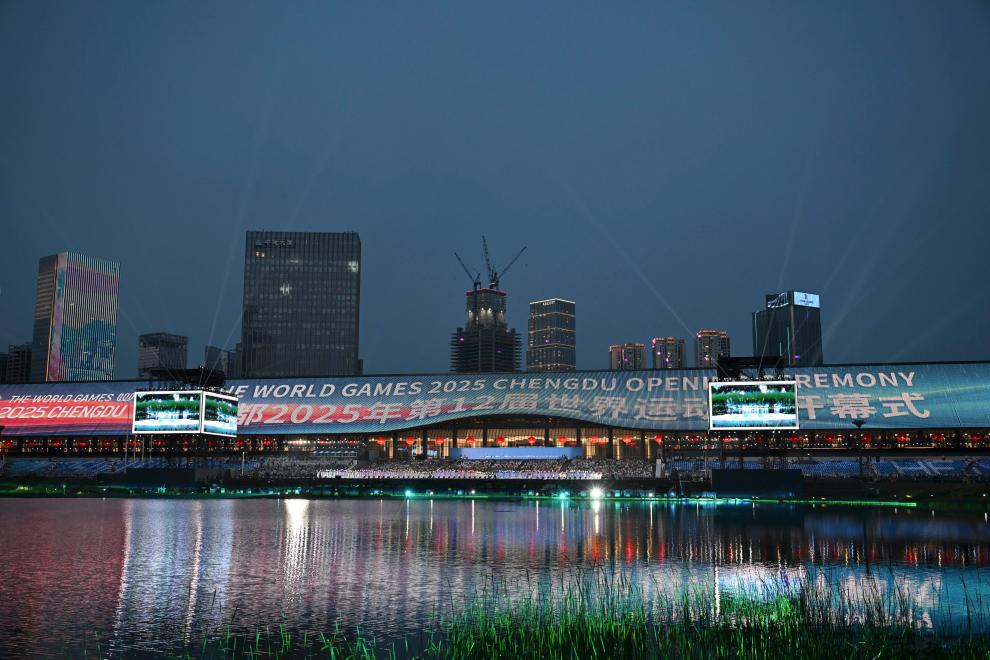 新华社成都8月7日电 题:锦城尽缤纷 梦想共绽放——第12届世界运动会开幕式侧记 新华社记者高萌、吴光于、董小红 立秋之夜,秦皇湖畔,余霞未尽,华灯璀璨。 "天府之檐"下,湖光绿茵上,万人齐聚,期待见证成都与世界的再次相拥。 20时整,伴随着欢快迎宾曲旋律,2025年第12届世界运动会开幕式拉开帷幕。 这是8月7日拍摄的开幕式现场。新华社记者 孙凡越 摄 演出从"缤纷之约"开启。大屏幕上,象征"生生不息"的太阳神鸟,穿越寰宇,落入主舞台上一位年轻人手中。 光影跃动,数百名舞者随着音乐起舞,青春与光影一同律动。自行车轮和滑轮划出优美曲线,市民们将运动的日常带到现场。 参演人员来自四面八方,年龄职业虽千差万别,却一同展现出健康中国的运动之美与青春活力。 这片土地上,人们对美好生活的向往世代相承、从未间断。当缤纷的焰火腾空而起,成都,这座雪山下的公园城市、烟火里的幸福之都,书 写着崭新篇章。 8月7日拍摄的开幕式上的焰火表演。新华社记者 陈益宸 摄 热情在空气中铺展。主舞台正后方的湖面上,两道水柱腾空而起,瞬间构成一座高耸的迎宾水门。在吉祥物"蜀宝""锦仔"的引导下,来自116 个国家和地区的运动员、随队官员、技术 ...