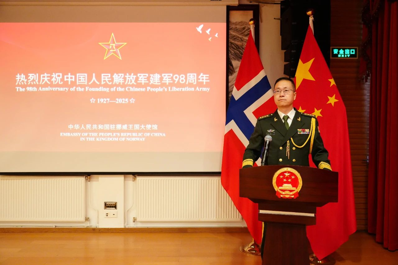 中国驻挪威大使馆举行庆祝中国人民解放军建军98周年招待会