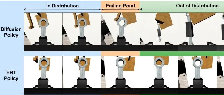 点击下方 卡片 ,关注" 具身智能 之心 "公众号 编辑丨具身智能之心 本文只做学术分享,如有侵权,联系删文 >> 点击进入→ 具身智能之心 技术交流群 更多干货,欢迎加入国内首个具身智能全栈学习社区 : 具身智能之心知识星球 (戳我) , 这里包含所有你想要的。 如果策略模型也能动态地思考与推理,尤其能理解"不确定性",是否能让机器人在真实世界中表现得更好? ⚡️ 研究简介:EBT-Policy 近期,研究团队提出了 EBT-Policy(Energy-Based Transformer Policy) ,一种基于能量模型(Energy-Based Model, EBM)的新型策略架构。 该方法在模拟与真实机器人任务中均表现出色,显著提升了训练和推理效率,并展现出独特的「零样本重试(zero-shot retry)」能力。 主要特点: ✍️ 什么是 Energy-Based Transformer (EBT)? EBT 模型通过学习一个 能量值 energy 来衡量输入变量之间的匹配程度。 在语言建模任务中,它学习的是上下文与预测之间的能量地形(energy landscape)。 ⚙️ 在模拟与真实环境中 ...
