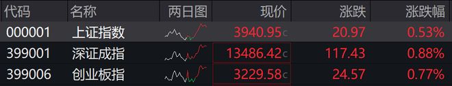 创业板指、深成指均涨近1% 全市场超4100只个股上涨