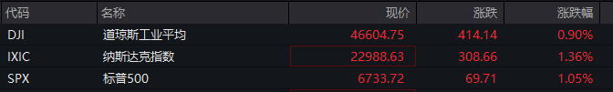 美股大盘表现 - 美股三大指数集体高开高走,道琼斯工业平均指数上涨0.90%至46,604.75点,纳斯达克指数上涨1.36%至22,988.63点,标普500指数上涨1.05%至6,733.72点 [1][2] 科技巨头及半导体行业 - 美股科技七巨头普遍上涨,苹果公司股价上涨4.02%至262.439美元,盘中一度创下263.05美元的历史新高 [4][5] - 苹果iPhone 17系列在中国和美国市场早期销售强劲,销量比iPhone 16系列高出14%,其中iPhone 17基本款在中国销量几乎翻了一番 [7] - 半导体板块走强,超微电脑上涨5.79%,安森美半导体上涨5.15%,科天半导体上涨3.37%,拉姆研究上涨2.92%,美光科技上涨2.86% [8] 中概股表现 - 中概科技龙头股多数上涨,阿里巴巴上涨3.07%,网易上涨2.13%,拼多多上涨1.42%,腾讯控股ADR上涨1.36%,百度集团上涨1.20%,京东集团上涨1.03% [10][11] - 部分中概股涨幅显著,云米科技涨超9%,世纪互联和无忧英语涨超6%,好未来和中金科工业涨5% [10] - 富时中国A50指数期货盘中拉升转涨 [12] 大宗商品市场 - 国际金价大幅走高,伦敦金现上涨1.77%至4326.140美元/盎司,COMEX黄金上涨2.79%至4331.0美元/盎司 [14][15] - 国际油价盘中一度跳水跌约2%,随后跌幅收窄,ICE布油下跌0.78%至60.81美元,NYMEX WTI原油下跌0.72%至56.74美元 [16][17]