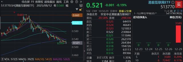 ETF盘中资讯|港股AI继续磨底,港股互联网ETF(513770)下探本轮调整新低,资金单日抢筹超3500万元