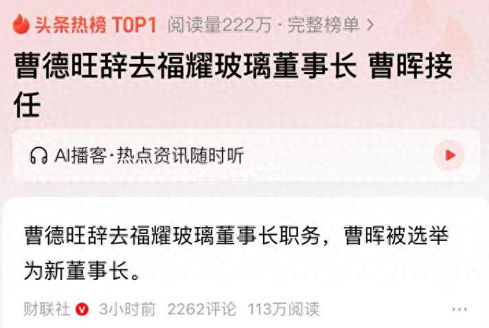 曹德旺辞去董事长一职,自曝原因,大儿子履历被扒,女婿能力也强
