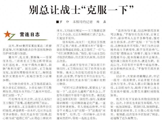 文章核心观点 - 一篇关于基层官兵呼吁减少“克服一下”式官僚主义的文章在《解放军报》刊发后引发广泛共鸣 传播量达到“10万+”甚至“100万+” [1] 其续作也引发了新一轮讨论 [1] 文章核心揭示了基层官兵对上级机关能解决却不解决、推诿塞责的作风问题感到厌弃 [7] 并强调作风建设需持续深入推进 [7] 文章内容分析 - 文章通过基层小事引发广泛共鸣 根源在于官兵对官僚主义作风的憎恶 [3] “克服一下”在基层常见 有时从鼓励变质为责任推卸 [3] - 军人具备克服困难的传统品质 如抗美援朝时期的“三个不相信”精神 [3] 但不应因此忽略官兵的正常求助和“示弱” [3] 有评论指出基层战士求助是“没有办法的办法” [3] 官兵“吃不了‘人造’的苦” [3] - “人造的苦”指上级机关能协调解决却让基层自我消化的困难 [5] 例如连队摄像机故障多次反映后只得到“老设备就是容易出问题”的回应 [5] 新主官协调更换后问题解决并提升效率 [5] 战士感叹需要的是“解决”的开始而非“忍耐”的指示 [5] - 一些机关干部轻视基层“小事” 对“急难愁盼”问题推诿扯皮、久拖不决 [5] 或执行政策机械僵化 把方便管理置于服务之上 导致“政策一直在路上 温暖从未下基层” [5] - 基层工作生活由小事组成 官兵共鸣是对“明明能解决却不解决”作风的厌弃 [7] 作风建设具有顽固性和反复性 需“当下改”与“长久立”结合 [7] - 对机关干部而言 关系基层利益的小事不可“小视” 是检验党性、履职能力的“试金石”和赢得信赖的“硬指标” [7] 主动与官兵并肩解决问题比口号更有号召力 [7]