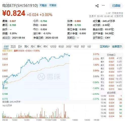 钠电+储能共振,电池ETF(561910)午后拉涨超3%引领两市!震裕科技暴涨超12%