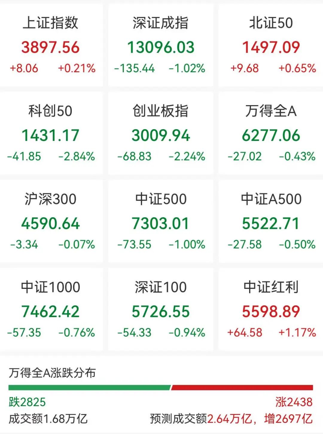 A股收评:尾盘回升三大指数跌幅收窄!沪指跌0.19%科创50逆市涨1.4%,稀土、黄金板块强势爆发!超3600股下跌,成交额2.37万亿缩量1599亿