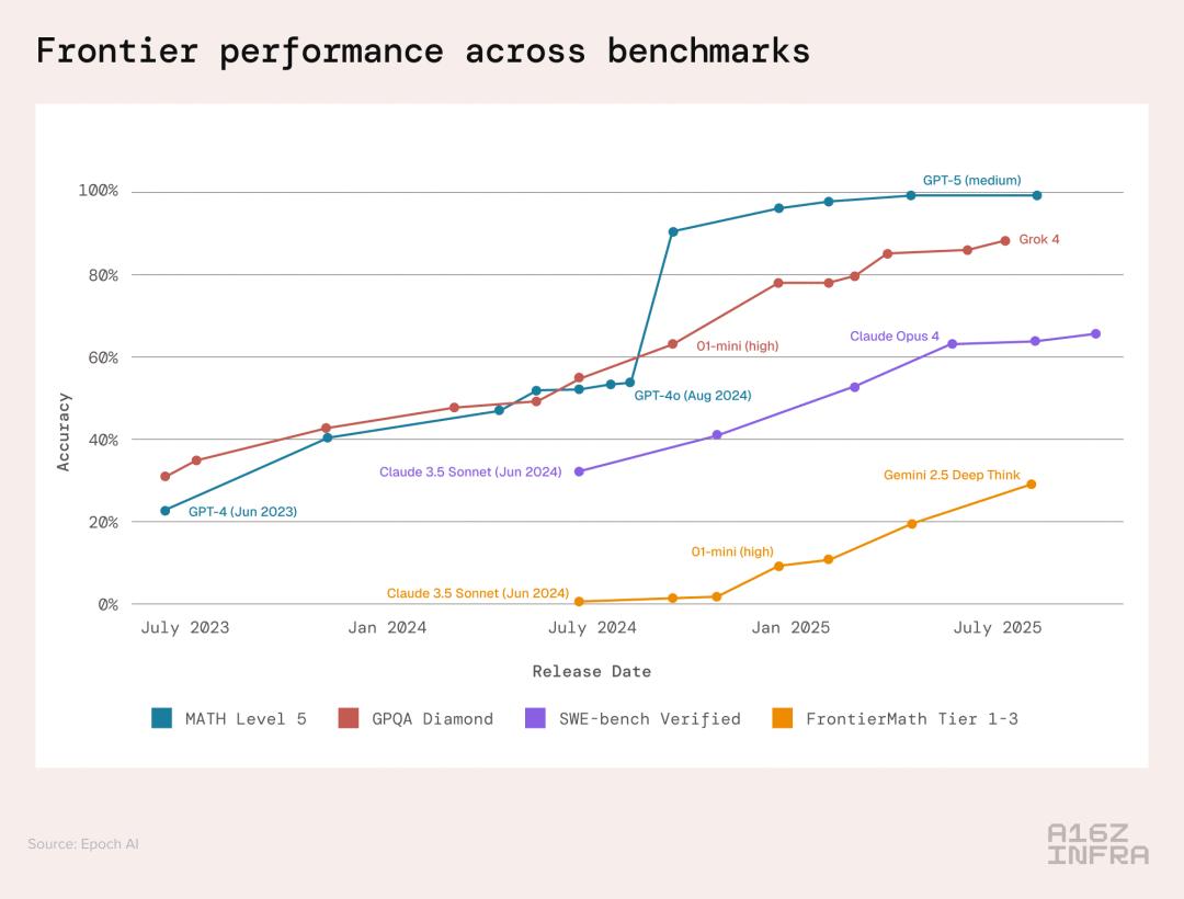 在过去一年,几乎每周都有一款新的视频生成模型登场,不断刷新基准成绩:更长的视频、更真实的物理、更一致的角色与镜头语言。我们习 惯了模型性能一路狂飙、不断突破。 但今年,节奏变了。如果你密切关注基准测试,可能会感觉"进步"放缓了:大多数主流模型都能生成 10–15 秒带同步音轨的视频,效果已经相 当惊人,但也不再令人惊讶。 这并不是坏事。在A16Z合伙人贾斯汀·摩尔看来,我们正在进入一个新的阶段:视频模型的"产品时代"。 简单来说,视频模型的进步,不再体现在模型参数或基准分数上,而是体现在多样性和专业化上。比如,我们开始看到不同模型在特定能力上 各自突破:物理模拟、卡通风格、多镜头剪辑……没有哪一个模型能"通吃全场",但每一个都在变得更擅长某一个维度。 与此同时,更大的机会开始从模型本身,转向"围绕模型"的产品构建:那些能简化创作流程、抽象出复杂操作的工具,正变得比模型本体更有 价值。 今天,就让我们跟着贾斯汀·摩尔来看看视频模型在过去一年的变化。 其实,大语言模型也走过类似的路径。2023到2025年,主流模型性能持续上升,之后在各种评测中逐渐趋于稳定。到了这个阶段,各家研究机构开始把重 心放在具体场景和垂直 ...