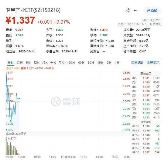 SpaceX史诗级IPO来袭!卫星产业ETF(159218)强势上攻冲击三连升!年内份额倍增领跑同类