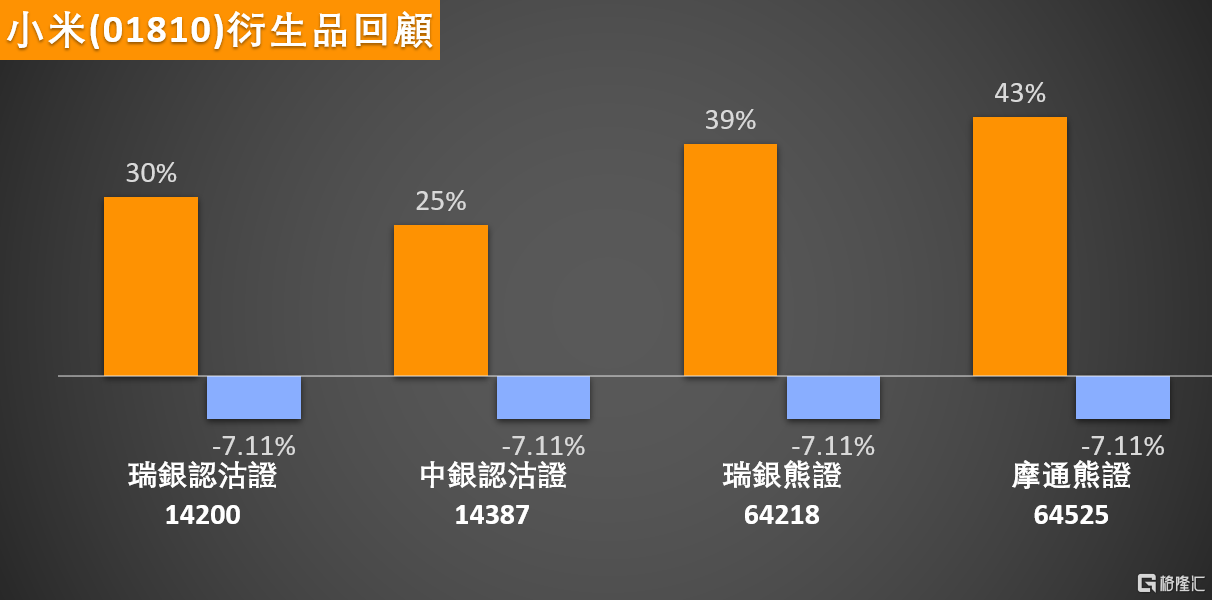 小米集团股价表现与市场情绪 - 小米集团(01810)股价收报45.96元,单日急跌3.65%,成交金额高达122.97亿元,5日振幅为11.2%,显示市场抛压与博反弹资金均十分活跃 [1] - 在正股两日下跌7.11%的背景下,相关衍生品如摩通熊证(64525)两日升幅高达43%,瑞银熊证(64218)升39%,窝轮方面瑞银认沽证(14200)升30%,中银认沽证(14387)升25%,杠杆效应显著 [1] 技术指标分析 - 技术面显示小米RSI指标低至28,已进入超卖区,随机震荡指标与牛熊力量指标均发出买入信号,另有指标显示严重超跌可能筑底 [1] - 移动平均线方面,股价已跌穿中短期均线,但上升概率仍有59%,阻力位先看51.3元,再看56.5元,支持位为43.9元,若跌穿则下看37.8元 [1] - MACD与保力加通道仍维持卖出信号,多个震荡指标整体偏中立,呈现多空角力格局 [1] 衍生品投资机会分析 - 认购方向可留意花旗认购证(16253),杠杆3.2倍,行使价52.93元,引伸波幅为同类中最低;中银认购证(16221)行使价52.27元,杠杆3.1倍,杠杆与引伸波幅均较理想 [3] - 认沽方向瑞银认沽证(14200)与中银认沽证(14387)行使价均为46.45元,引伸波幅相对较低,杠杆分别为3倍与2.9倍,适合稳健投资者 [3] - 牛证方面可关注瑞银牛证(67402),行使价42元,溢价最低,实际杠杆9.4倍;汇丰牛证(66931)行使价同为42元,实际杠杆高,溢价亦低,适合博反弹 [3] - 熊证首推法兴熊证(65365)与瑞银熊证(67343),收回价均为54元,法兴熊证溢价最低,实际杠杆6.7倍;瑞银熊证实际杠杆最高为6.5倍,溢价亦低,适合看空投资者 [3]