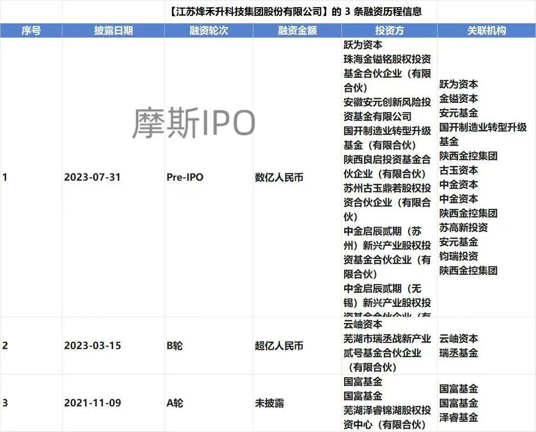公司IPO进程 - 江苏烽禾升科技集团股份有限公司已于2026年1月28日与华泰联合证券签署首次公开发行股票辅导协议,并正式向证监会江苏监管局提交辅导备案申请,启动IPO进程 [1][4] - 公司聘请的上市中介团队包括:辅导机构华泰联合证券、律师事务所安徽天禾律师事务所、会计师事务所容诚会计师事务所 [1][7] - 辅导工作将分阶段进行,内容包括完善公司治理与内控体系、确保业务资产人员财务机构独立完整、规范关联交易与同业竞争、制定未来发展规划与募投项目、以及建立上市公司信息披露制度等 [8][9][10] 公司基本情况 - 公司全称为江苏烽禾升科技集团股份有限公司,成立于2017年8月21日,注册资本为9,113.7158万元,注册地址位于江苏省苏州市昆山市 [5] - 公司法定代表人与控股股东均为杨平,其直接持有公司27.64%的股权 [1][5] - 公司行业分类为“C35 专用设备制造业”,是一家为新能源电池、汽车零部件、医疗器械等领域全球头部企业提供数字化、柔性化智能制造生产解决方案及数据服务的高新技术企业 [1][5] 公司融资历史与股东背景 - 公司在IPO前已完成多轮融资,投资方包括中金资本、云岫资本、国富基金、跃为资本等知名投资机构 [1] - 2023年7月31日,公司完成Pre-IPO轮融资,融资金额为“数亿人民币”,投资方包括跃为资本、中金资本、国开制造业转型升级基金等 [2] - 2023年3月15日,公司完成B+轮融资,融资金额为“超亿人民币”,投资方包括云岫资本、瑞永基金、国富基金等 [2] - 2021年11月9日,公司完成A+轮融资,融资金额未披露,投资方为国富基金 [2]