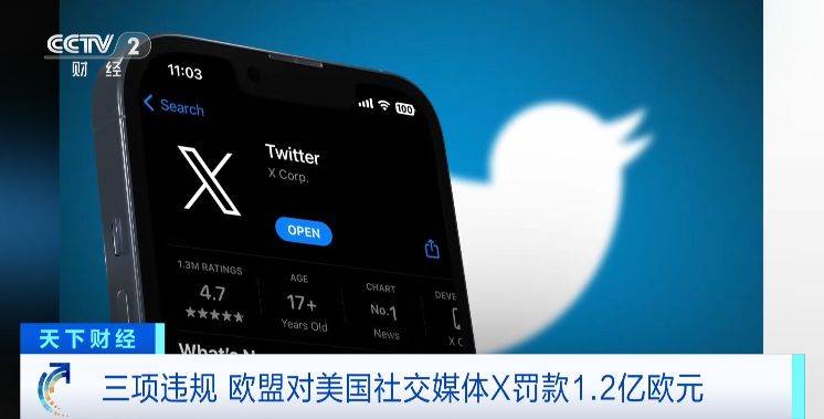 社交媒体平台“X”因违规被欧盟处以1.2亿欧元罚款