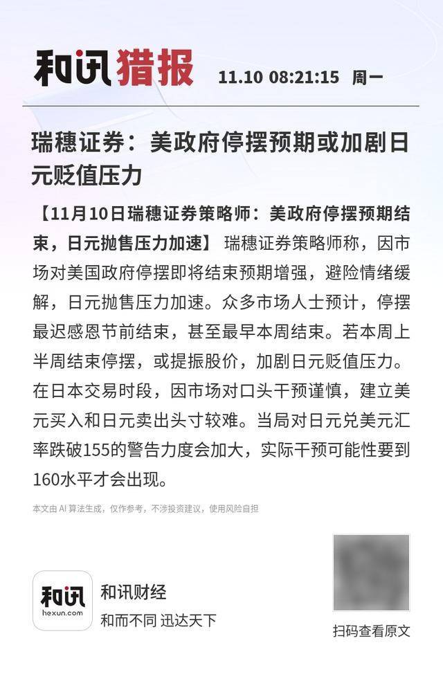 瑞穗证券:美政府停摆预期或加剧日元贬值压力