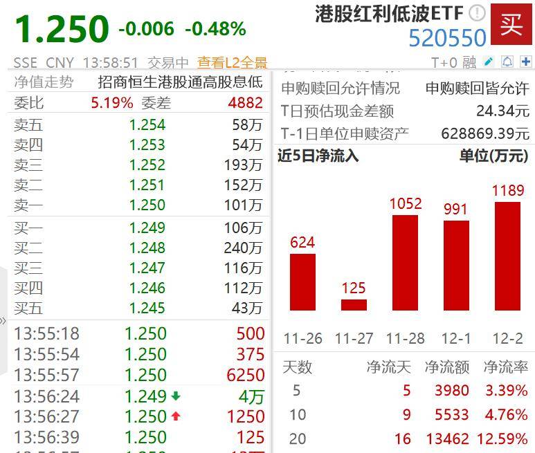 资金踊跃布局港股红利类资产!港股通红利ETF(513530)连续24个交易日获资金净流入