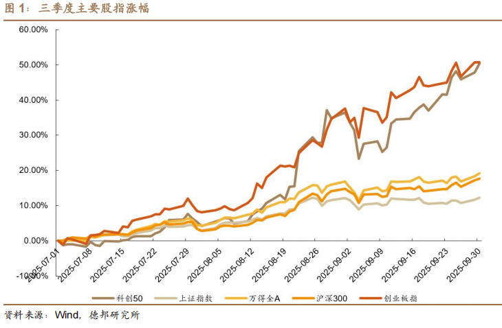 核心观点 - 2025年9月30日A股市场震荡分化上行,科技股维持强势,全市场成交额约2.20万亿元[3][6] - 三季度创业板指和科创50指数分别大幅上涨50.40%和49.02%,显著优于上证指数12.73%的涨幅[6] - 短期市场风格或将从“科技领涨”转向“均衡配置”,但科技板块内部强逻辑细分品种仍将有不错表现,红利板块配置价值凸显[12] - 中长期看好A股市场,主因美元降息周期释放全球流动性以及国内经济复苏和科技产业加码[12] 市场行情分析:股票市场 - 节前最后一个交易日A股呈现分化上行格局,上证指数收涨0.52%至3882.78点,科创50收涨1.69%[6] - 成长板块延续强势,金融等防御性板块承压,半导体和锂电设备等科技成长赛道表现突出[6] - 9月成交额整体维持在2万亿元以上,市场流动性充裕,支撑结构性行情展开[6] - 10月节后需关注上市公司三季报披露以及四中全会将于10月20日召开,“十五五”规划相关政策或带来新投资方向[6] 市场行情分析:债券市场 - 国债期货市场低开高走,10年期主力合约收盘上涨0.17%至107.845元,30年期主力合约上涨0.10%至113.90元[9] - 资金面偏松,Shibor 7天期利率下行11.8BP至1.41%,央行当日净回笼资金339亿元[9] - 9月制造业PMI环比回升0.4个百分点至49.8%,创近6个月新高,但仍处于收缩区间[9] - 在经济弱修复背景下货币政策难收紧,债市有望筑底后维持震荡偏强走势[9] 市场行情分析:商品市场 - 国内商品期货市场分化显著,南华商品指数下跌0.75%至2539.12点[10] - 贵金属板块逆势领涨,沪金、沪铜主力合约涨幅均超1%;焦煤、原油、焦炭跌幅居前,分别下跌3.88%、2.99%、2.61%[10] - 黑色品种交易核心从政策预期转向政策效果,关注供给收缩后的价格需求支撑[10] - 贵金属趋势确立,美联储降息周期下实际利率下行有望推动黄金定价上移,地缘政治风险进一步支撑价格[10] 交易热点追踪 - 近期热门品种包括贵金属、人工智能、国产芯片、机器人、大消费、券商等,均获“多”评级[11] - 贵金属核心逻辑为央行持续增持与美联储降息;人工智能逻辑为全球科技巨头资本开支加速;国产芯片逻辑为技术突破与国产替代空间大[11] - 权益市场短期或开启震荡,风格转向均衡配置;债市短期有压力但超长期国债期货性价比凸显;商品市场贵金属和有色金属因全球流动性宽松值得长期布局[12]