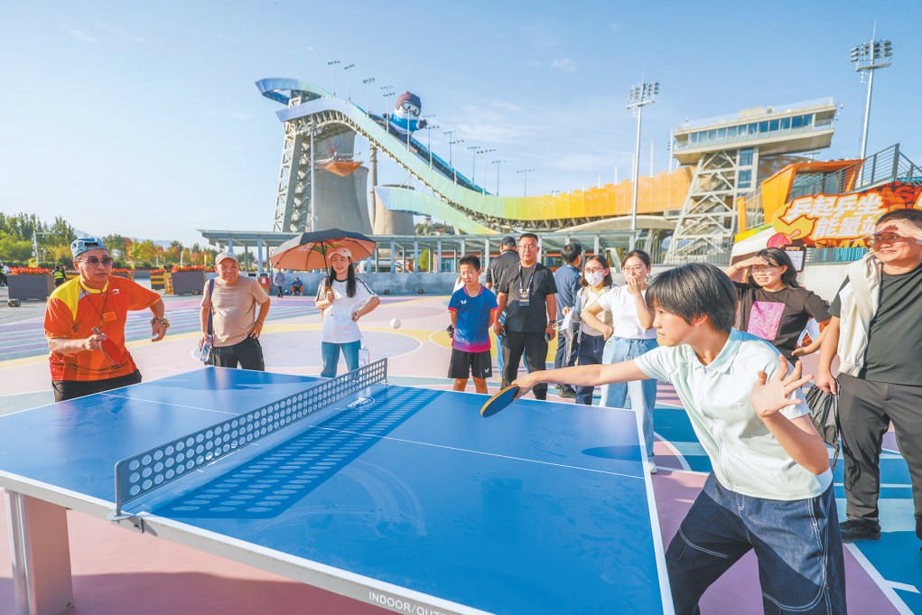 在2025WTT北京大满贯公园,球迷在首钢滑雪大跳台下交流球技。 本报记者 邓伟摄 本报讯(记者 潘福达)WTT中国大满贯2025于9月28日在首钢园开幕,作为大赛的第二现场,位于滑雪大跳台南广场的大满贯公园同步开园。记 者昨天从负责公园运营的首钢体育公司获悉,开业前三天,大满贯公园接待客流超2.5万人次。 今年是WTT中国大满贯在首钢园举办的第二年,作为融合观赛体验与潮流互动的赛事配套活动,大满贯公园迎来全新升级,设置了户外草坪观赛 区、互动游戏区、品牌展示区和餐饮区四个区域。昨天10时许,大批观众已经来到滑雪大跳台入口处排起了长队。一旁的草坪观赛区松弛感拉 满,一块超高清4K大屏正在直播赛事,不少球迷提前几个小时就在舞台前的排队区守候,只为在下午举办的球员见面会上与喜爱的运动员互动。 品牌展示区汇聚多家赞助商参展,很多粉丝直奔由首钢体育出品的官方特许商品店,毛绒挂链、流沙福袋、环保背包、虎牙手串等成为热销品。 来大满贯公园不仅能观赛购物,互动游戏区同样很热闹,星光大道、大满贯定向迷宫、电子竞技体验等娱乐项目吸引人们体验。 WTT赛事与大满贯公园联动,开放至10月5日,同时与首届中国国际糖果季互动,持大满贯 ...