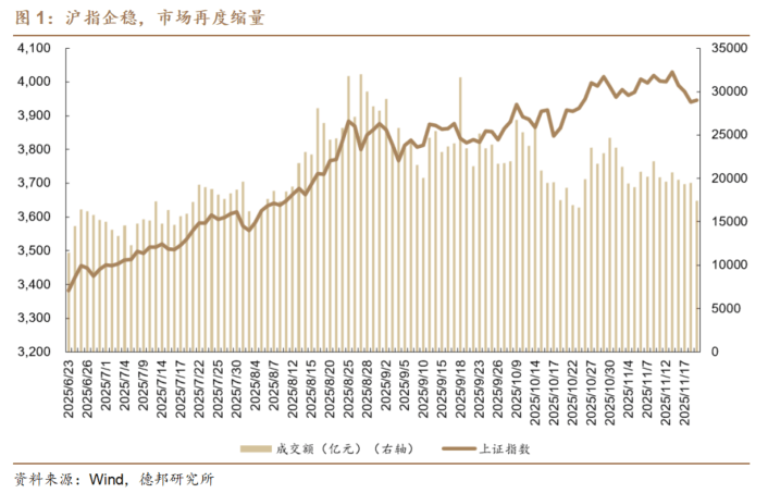 2025年11月20日周四,A股市场调整;国债期货盘整,30年期下跌;商品多数下跌,碳酸锂突破10万。 PART.02 市场概览 市场行情分析 1) 股票市场:股指多数下行,整体情绪仍偏低 股指多数下行,整体情绪偏低。11月20日,A股高开低走,其中:上证指数收跌0.4%报3931.05点,深证 成指跌0.76%,创业板指跌1.12%,北证50跌1.07%,科创50跌1.24%,万得全A跌0.66%,万得A500跌 0.62%,中证A500跌0.67%。A股全天成交1.72万亿元,上日成交1.74万亿元,成交规模基本持平,市场情 绪持续偏低。 程强系德邦证券研究所所长、首席经济学家、中国首席经济学家论坛理事 PART.01 预计债市短期震荡与长期宽松并存。11月20日,中国人民银行授权全国银行间同业拆借中心公布,2025 年11月20日贷款市场报价利率(LPR)为1年期LPR为3.0%,5年期以上LPR为3.5%。至此,LPR两个品种 报价已连续6个月保持不变。本次LPR数据基本符合预期,带动债市整体持平,仅30年期价格有所下跌。 当前债市核心逻辑或仍为"资金面宽松托底、配置需求支撑,交易盘短期获利了结"。当 ...