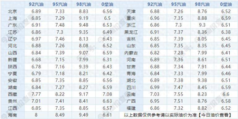 今日是新一轮油价调整周期的第10个工作日,当前预计汽油价格下调55元/吨,柴油价格下调55元/吨,折合每升油价下调0.04-0.05元,相比 上周五的油价预计跌幅减少5元/吨,超下调红线,油价要跌。 另外,有知情人士透露称,G7和欧盟考虑禁止俄罗斯石油出口海运服务,取代油价上限。如果政策落地,短期内预计将推高国际油价。 总的来说,国际油价仍有上涨可能,具体还得看后续俄乌局势是否能出现缓和。希望新一轮油价调整能继续下跌。 本轮油价会跌多少,让我们持续关注~ 本轮油价调整时间:12月8日24时 | 地区 | 92号汽油 | 95号汽油 | 98号汽油 | 0号柴油 | | --- | --- | --- | --- | --- | | 北京 | 6.89 | 7.33 | 8.83 | 6.56 | | 上海 | ୧:82 | 7.29 | 9.19 | 6.5 | | 江苏 | 6.86 | 7.3 | ਰੇ 35 | 6.49 | | 天津 | 6.88 | 7.26 | 8.76 | 6.52 | | 重庆 | 6.96 | 7.35 | 8.88 | 6.6 | | 江西 | 6.82 | 7.35 | ...