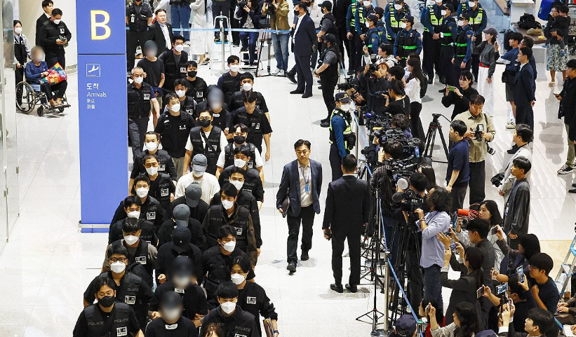 大规模遣返行动 - 64名涉嫌网络诈骗的韩国人从柬埔寨被押解回国,此为韩国从境外押解本国犯罪嫌疑人规模最大的一次行动[1] - 韩国派出约190名警察随机押送以确保过程安全有序[1] - 被遣返的64人中有59人是在柬埔寨警方打击犯罪园区的行动中被捕,另有5人在主动报警求助后获救[2] 案件背景与后续调查 - 此次遣返行动的直接契机是一名韩国大学生在柬埔寨被诈骗团伙虐待致死的事件[1] - 韩国警方派遣由侦查人员、法医等7人组成的工作组前往柬埔寨,与柬方联合对死者进行尸检[1] - 64名涉事人员已被分散至韩国全国多地接受调查,其中45人被移交至忠清南道地方警察厅,15人交由京畿北部警察厅,另有4人被分别押送至大田、首尔、京畿南部和江原道警察厅[2] 政府应对措施 - 韩国总统李在明指示主管部门尽快删除涉及柬埔寨等东南亚地区的非法招聘广告,从源头减少公民受骗风险[3] - 韩国金融部门正在研究对柬埔寨诈骗集团实施制裁的可行性,评估将部分犯罪团体及关联企业指定为金融交易限制对象[3] - 拟纳入制裁范围的对象包括太子集团与汇旺集团等,美国与英国政府此前已对上述企业实施联合制裁[3] 执法协作与官方表态 - 韩国政府派出由外交部第二次官金珍我率领的工作组前往金边,与柬方就案件应对及合作机制进行磋商[1] - 韩国警察厅代理厅长俞在成承认在处理柬埔寨境内案件时存在与柬方协作不足的问题[2] - 韩国共同民主党最高委员全贤姬建议政府动用包括外交、情报、军力在内的一切手段保护在柬埔寨的韩国公民安全[2]