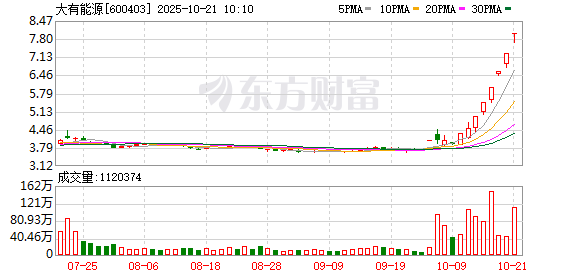 股价表现 - 公司股票在8个交易日内录得7个涨停,累计涨幅达103.83%,累计换手率为24.45% [2] - 截至统计时点,该股当日成交量为1146.01万股,成交金额为9156.60万元,换手率为0.48%,最新A股总市值为191.03亿元 [2] - 近期股价表现显示多个交易日涨幅达到或接近10%,例如2025年10月20日、17日、16日、15日、14日涨幅分别为10.00%、10.00%、10.09%、10.10%、10.00% [2] 交易与资金数据 - 该股最新两融余额为8395.96万元,其中融资余额8299.99万元,较前一个交易日减少309.44万元,环比下降3.59% [2] - 近8日融资余额累计增加2130.10万元,环比增长34.52% [2] - 龙虎榜数据显示,因连续三个交易日内涨幅偏离值累计达20%等条件,该股上榜3次,沪股通累计净买入1938.16万元,营业部席位合计净买入1940.37万元 [2] 主力资金动向 - 近10个交易日主力资金净流入额波动较大,其中2025年10月17日净流入11189.27万元,10月14日净流入6595.92万元,10月10日净流入9815.32万元 [2] - 部分交易日出现主力资金净流出,如2025年10月20日净流出2961.57万元,10月16日净流出5938.85万元,9月29日净流出8795.45万元 [2] 公司基本信息 - 河南大有能源股份有限公司成立于1998年01月15日,注册资本为239081.2402万人民币 [2]