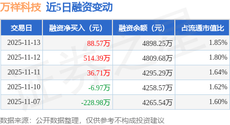 万祥科技:11月13日融资净买入88.57万元,连续3日累计净买入639.67万元