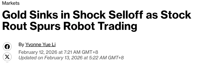 市场整体表现与下跌触发因素 - 美国股市全线下跌,道琼斯指数跌1.33%,标普500指数跌1.57%,纳斯达克指数跌2.03% [2] - 大宗商品与加密货币普遍暴跌,金价一度下跌4%,白银暴跌11%,油价下跌2.7%,铜价一度下跌2.9%,比特币跌至65000美元 [2] - 市场下跌由美股特定板块引发,并迅速传导至全球市场,在流动性紧张时期,黄金也被抛售 [2] - 市场情绪从对人工智能的狂热转向对人工智能的恐惧,担忧AI会压缩物流、商业地产、财富管理、保险中介等多个行业的利润 [2] 市场下跌的深层原因与前景 - 市场下跌发生在关键美国1月CPI数据公布前夕,但即便数据带来好消息,也可能仅是“一日行情”或“技术性反弹” [3] - 市场下跌的根源在于对人工智能颠覆性影响的担忧,这种结构性担忧无法被短期通胀数据缓解 [3] - 近期市场最明显的特征是暴跌时完全缺乏买方接盘,表明市场信心脆弱 [4] 相关机构观点与预测 - 有观点认为全球市场未来三年的走势已清晰呈现,并提及了2026年的讲话内容作为依据 [4] - 对黄金、白银、铜是否会出现多年大牛市,以及A股、港股、黄金、白银、原油、人民币上半年点位进行了预测 [4] - 提出人民币进入“历史级”周期,其后续走势可能令世界意外 [4] - 对油价是否会复制黄金、白银的史诗级行情进行了图表分析 [5] - 春节前夕,华尔街点名看好13只中国股票,其中5只获得超配评级 [5]