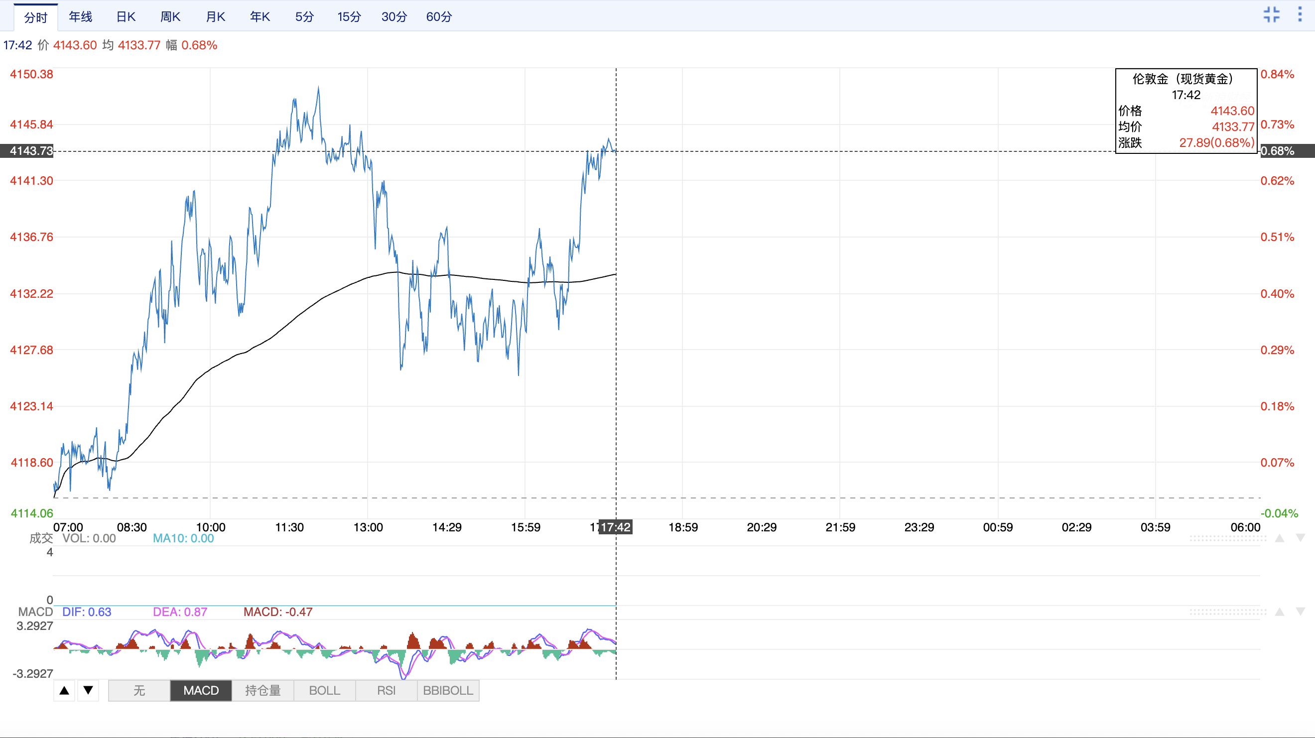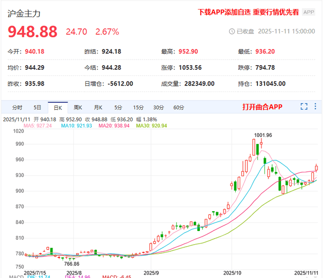 消费者购买黄金首饰意愿出现了明显的削弱 "越等越难下手"的情况会在黄金交易领域上演吗? 11月11日,国际金价大涨,日内开盘价为4116.20美元/盎司,盘中冲高至4148.91美元/盎司,随后回落,11日17:30时的价格在4143美元/盎司,较昨日4115美 元/盎司的收盘价,涨幅约为28美元/盎司。10月下旬的国际金价走势以下跌为主,在11月连涨几日后,11日17:30时的报价较10月20日现货黄金价格4381.29 美元/盎司的高位仍有明显回落。 数据来源:汇通网 此前,有个人黄金投资者告诉第一财经记者,就买入金饰和金条而言,10月之前买金"不需要想那么多",但11月开始需要考虑的因素就更为复杂了,有些拿 不准当前是否还是买金好时机。 广东南方黄金市场研究院市场研究中心主任宋蒋圳在接受第一财经记者采访时表示,金价走势不会因为国内税改政策出现大的变化,依然参照全球宏观基本 面在走。如果全球央行购金、去美元化趋势及经济不确定性等核心支撑未动摇,国际金价在中长期依然会呈现上行趋势。对应来看,黄金投资仍然是不错的 选择。 第一财经记者观察发现,双"11"期间,部分头部金饰品牌在电商渠道和线下门店设置了促销活动 ...