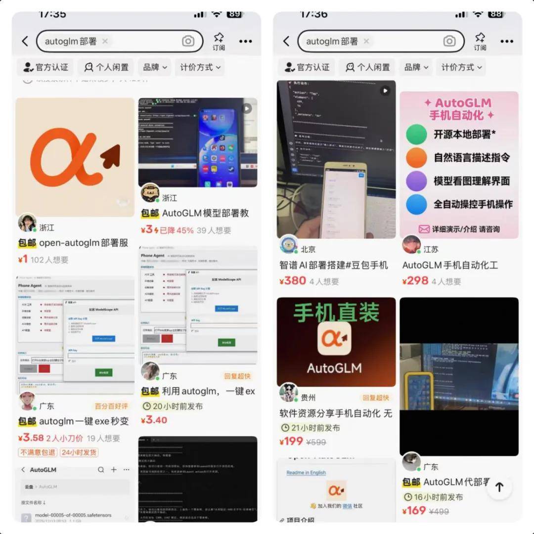没有和手机厂商合作的智谱,走上了"民间华强北"版本的AI手机野路子。 开源不到一天,智谱现任高级副总裁吴玮杰发帖感概:智谱GLM大模型刚开源,就在闲鱼上变成别人的生意。 「市象」发现在闲鱼搜索"豆包手机""智谱豆包手机"等相关关键词,就会出现旧手机变豆包手机、普通手机变豆包手机的服务。这些商品从最低1元到最 高近500元的价格不等,相比二手市场溢价过万元的豆包手机,可谓性价比十足。 能够把豆包手机干到这么便宜的基础是近期智谱开源的Open-AutoGLM。 在豆包手机掀起AI手机的舆论热潮后,2025年12月9日,智谱宣布开源其核心AI Agent模型AutoGLM,任何厂商、任何设备、任何开发者,都可以基于它 复现一个能看懂屏幕、能点能滑、能输入的AI Agent。 最近智谱的广告出现在机场广告牌,打出了一整套AI叙事的新标签:"有的AI,提供情绪价值""智谱AI,提供商业价值"。配合上醒目的LOGO,意在强化 其在AGI时代的价值感。 甚至,智谱高级副总裁吴玮杰也调侃发声:有感觉出来我们是在内涵谁吗?尽管语气轻松,但"最近我们是越来越好了,好几个机场的广告位都上了,你 们知道谁是'有的AI'吗?"依然难掩 ...