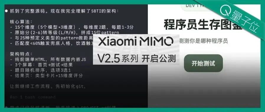 小米新开源旗舰!MiMo-2.5更省token:10分钟仿写SBTI测试