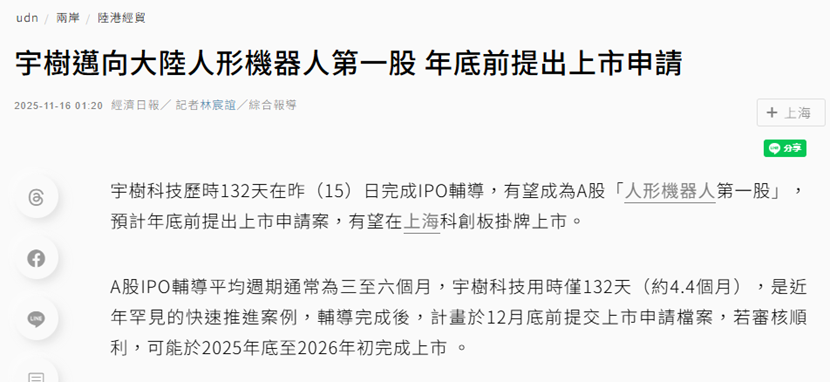科技企业IPO审核节奏加快,外媒报道宇树科技