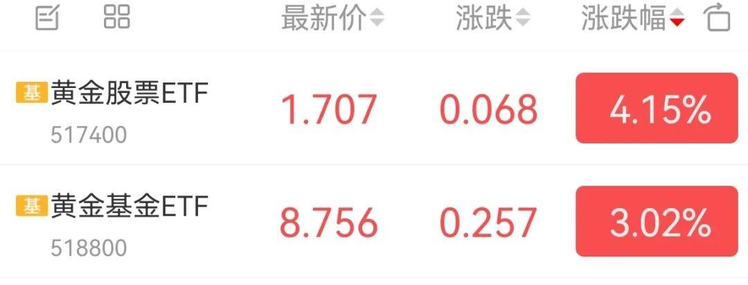 避险情绪不断累积,有色ETF基金(159880)涨超2.2%,黄金价格屡创新高