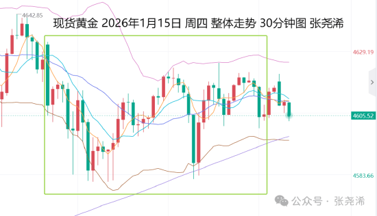 黄金价格走势回顾 - 1月15日国际黄金价格触底回升,T型收跌,日内走势震荡,开盘于4629.55美元/盎司,最高触及4632.20美元/盎司,最低下探4581.25美元/盎司,最终收于4615.70美元/盎司 [1] - 当日金价日振幅为50.95美元,收跌13.85美元,跌幅0.3% [1] 影响价格的主要因素 - 价格承压因素:特朗普暂缓决定是否对伊朗发动军事打击,打压了黄金的避险需求;美国初请失业金人数意外下降,增强了美联储将在数月内按兵不动的预期,限制了金价多头 [3] - 价格支撑因素:盘中受到支撑买盘推动,令金价触底回升 [3] 短期市场展望与关注点 - 1月16日金价开盘走弱,受到前一日欧美盘阻力压制及数据整体利空影响,短期面临震荡调整走低的预期,但整体看涨前景不变 [3] - 日内关注美国12月工业产出月率、美国1月NAHB房产市场指数等数据,市场预期好坏参半,但基于前一日数据表现,利空概率较大 [5] - 需关注美联储官员讲话,包括理事鲍曼、堪萨斯联储主席施密德及副主席杰斐逊的讲话,此前两者讲话偏鹰派,可能对金价构成压力 [5][6] 技术分析观点 - 月线级别:金价本月开盘强势,运行在趋势线压力上方并刷新高点,若本月持稳收阳,年内有望进一步打开新的牛市空间,涨幅可能超30%,看涨目标至5500-6000美元区域 [6] - 周线级别:金价持稳运行在5-10周均线上方,布林带向上延伸,看涨前景加大,未来一两周有望继续攀升触及4700美元关口 [8] - 日线级别:金价多头动力减弱,维持高位震荡盘整,短期有调整至10日均线4545美元及中轨线4475美元附近的预期,但整体回升趋势良好,回撤至支撑位被视为看涨入场机会 [8]