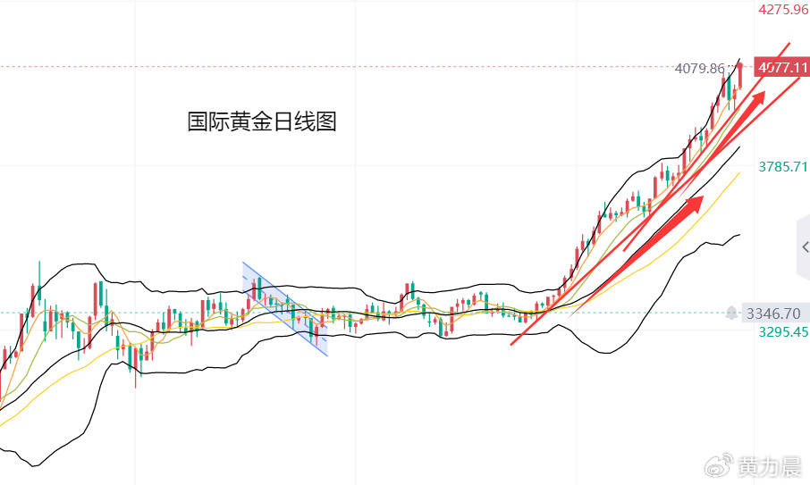 日线图上,黄金在上周冲高遇阻,经过短线回调修正后,于本周开盘后继续上涨,再创历史新高,黄金整体保持上升趋势,短期 表现依旧强劲。黄金下方支撑,可以关注上周金价创造的历史高点4059美元,上周金价多次试探这里遇阻回落,日内金价上涨一 度这里遇阻,在向上突破后,又回踩4059美元企稳继续冲高,其次关注上周五金价反弹高点4022美元,日内金价向上突破,涨至 4059美元遇阻后,回落试探这里企稳再次冲高;黄金上方压力,主要关注目前历史高点4079美元附近的突破情况,进一步上涨, 可关注目前日线布林带上轨位置4100美元,继续突破则顺势上看,上不猜顶。5日均线与MACD指标金叉向上,KDJ与RSI指标在 超买区域死叉向下调整后,重新开始形成金叉向上运行,短期技术面显示多方继续占优,有机会进一步冲高。黄金日内参考:美 国总统特朗普,加码对华关税威胁,市场避险情绪快速升温,叠加美联储进一步降息预期等利好因素,推动黄金价格上涨,再创 历史新高,走势继续保持上升趋势。操作上建议震荡思路对待,下方支撑关注4059美元,其次4022美元,上方压力关注4079美元 的突破情况,进一步上涨关注4100美元,继续突破则顺势上看,上不猜顶 ...
