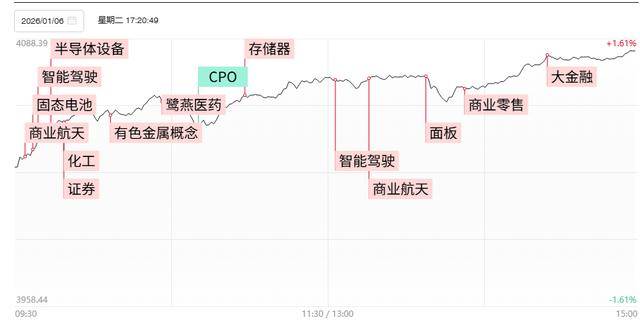 2026年首个交易日,A股市场迎来"开门红",上证指数重新站上4000点。1月6日,上证指数又走出13连 阳的新纪录,报收4083.67点,再创十年新高;两市及北交所共4101只股票上涨。 从板块来看,脑机接口概念延续强势,十余只成分股涨停,三博脑科、美好医疗、创新医疗2连板。被 视为"牛市旗手"或"市场风向标"的券商股强劲上行,华林证券冲上涨停,华安证券、东北证券等多股大 涨。有色金属板块表现活跃,洛阳钼业、紫金矿业等多股创历史新高。商业航天概念反复活跃。 这种从"模式创新"向"底层技术创新"的偏好反转,体现了投资者对中国经济高质量发展的坚定信心。科 技不再是市场的点缀,而是成为了定盘星,重构了资本市场的估值体系与成长逻辑。 与此同时,作为"牛市旗手"的券商股与作为"价值压舱石"的有色金属板块交相辉映,构成了市场上涨的 双翼。券商股的爆发,折射出市场信心的全面修复以及对资本市场制度改革红利的预期;而洛阳钼业、 紫金矿业等资源巨头创下历史新高,则反映了在全球通胀预期与工业硬需求下,中国核心资产在全球配 置中的独特性与稀缺性。 这种"科技领航、金融助攻、资源筑底"的良性互动,标志着市场进入了一个更加成熟、更加均 ...