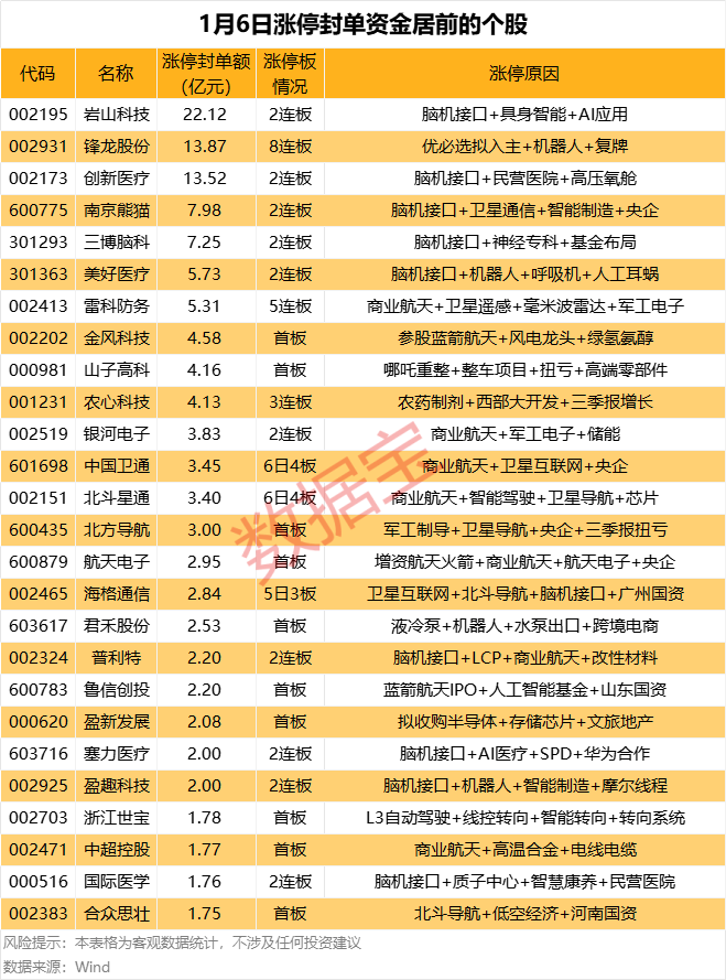 揭秘涨停 | 脑机接口热门股封单超22亿元